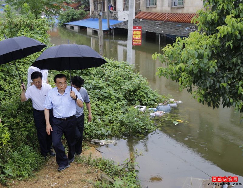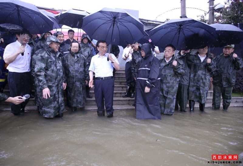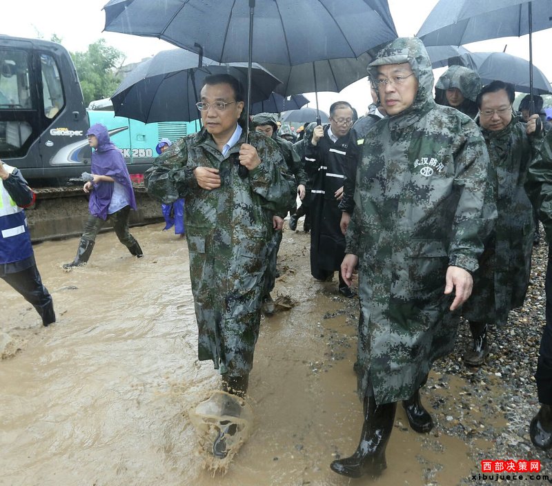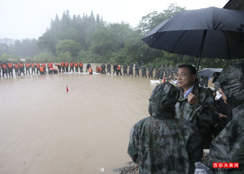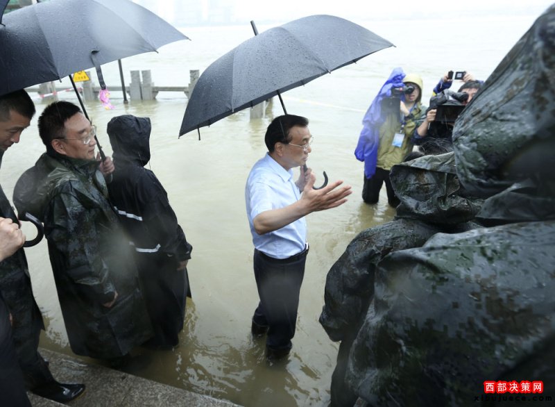李克強(qiáng)冒大雨在武漢長江干堤現(xiàn)場指揮搶險救災(zāi)