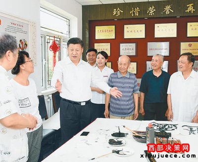 7月28日,中共中央總書記、國家主席、中央軍委主席習近平到河北唐山市調研考察。這是習近平在唐山市祥富里社區(qū)文化活動室勉勵正在進行書法繪畫的社區(qū)居民。