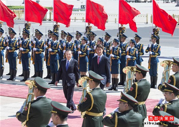 8月31日,國(guó)務(wù)院總理李克強(qiáng)在人民大會(huì)堂東門外廣場(chǎng)為特魯多舉行歡迎儀式。
