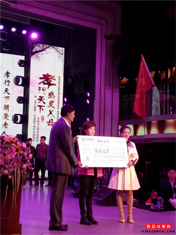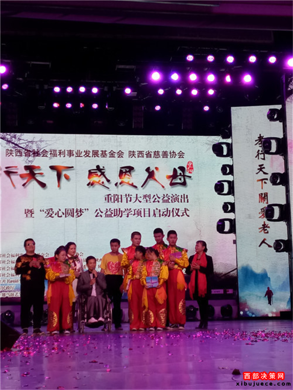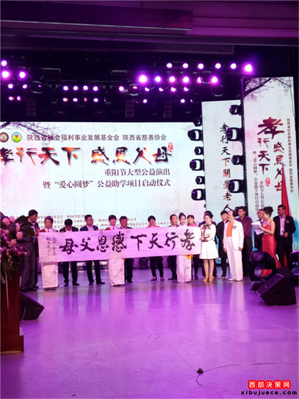 西部決策網(wǎng)訊 我國傳統(tǒng)的節(jié)日“九九重陽”也是“老人節(jié)”。值此佳節(jié)良晨,在西安金翅鳥演藝隆重舉行了由陜西省民政廳指導(dǎo),陜西省社會(huì)福利事業(yè)發(fā)展基金會(huì)攜手陜西省慈善協(xié)會(huì)聯(lián)合主辦,陜西省社會(huì)福利發(fā)展基金會(huì)主持人專項(xiàng)基金委員會(huì)、陜西賓悅文化傳媒有限公司承辦,以及陜西省社會(huì)福利事業(yè)發(fā)展基金會(huì)陜北力量專項(xiàng)基金委員會(huì)、陜西省社會(huì)福利事業(yè)發(fā)展基金會(huì)關(guān)公文化專項(xiàng)基金委員會(huì)、陜西省社會(huì)福利事業(yè)發(fā)展基金會(huì)陜北民歌專項(xiàng)基金委員會(huì)、陜西省社會(huì)福利事業(yè)發(fā)展基金會(huì)影視文化專項(xiàng)基金委員會(huì)聯(lián)合協(xié)辦的“孝行天下感恩父母”大型公益演出暨“愛心圓夢(mèng)”公益助學(xué)項(xiàng)目隆重啟動(dòng)。