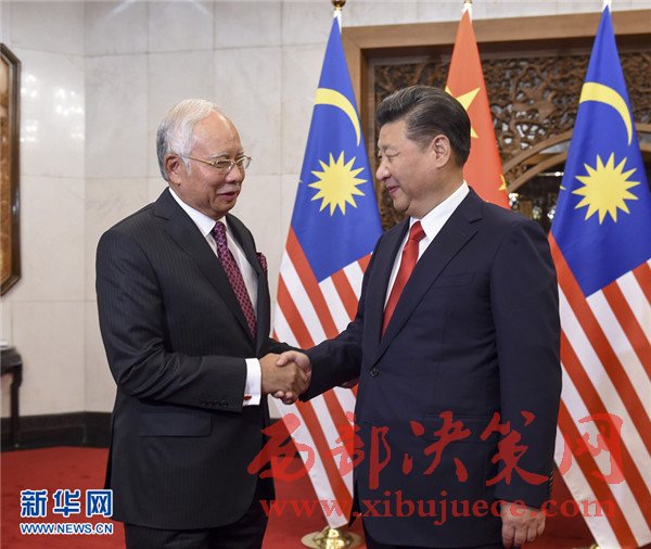 11月3日,國家主席習(xí)近平在北京釣魚臺國賓館會(huì)見馬來西亞總理納吉布。