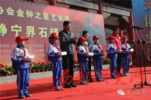 市委書記鄭亞軍致辭,慰問演出活動由靜寧縣委書記王曉軍主持。鄭亞軍指出,平?jīng)鍪且粋€古老而又神奇的地方,更是一塊紅色的熱土。1935年8月到1936年10月,紅一、二、四方面軍和紅二十五軍全部過境平?jīng)觯t色足跡遍及平?jīng)銎呖h區(qū)。界石鋪作為紅軍三大主力靜會地區(qū)會師的“中心基地”,是紅軍長征途徑的主要地區(qū),留下了毛澤東、周恩來、張聞天等五位黨和紅軍領導人,開國十大元帥中的九位元帥,十大將軍中的八位將軍,還有57位上將中的47位、177位中將中的161位、千余位少將和數(shù)萬紅軍將士的歷史足印,在中國革命史上具有重要的歷史地位,發(fā)揮了重要的作用。