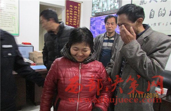 當(dāng)天下午,耶先生一家人及其村委干部驅(qū)車趕赴鳳翔縣公安局。在辨認被害人照片后,確認民警解救的被拐婦女為2014年8月11日與耶先生失散的女兒耶某。在民警陪同下,耶先生來到鳳翔縣救助站見到了自己的女兒,耶先生顫抖著雙腿奔向女兒,一直以來寡言少語的女兒見到父親竟開口叫了聲“爸爸”,并為激動落淚的耶先生擦干眼淚。
