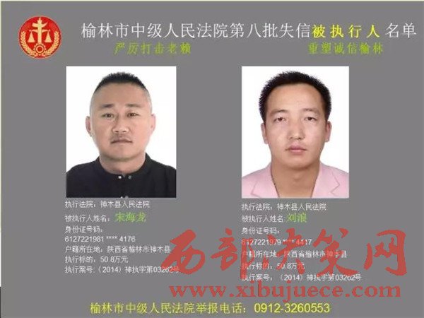 榆林中院最新發(fā)布第八批失信被執(zhí)行人"黑名單"