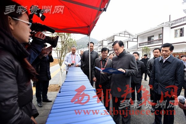 在百里杜鵑管理區(qū)大水鄉(xiāng)高潮安置點,陳敏爾仔細(xì)查看搬遷戶檔案