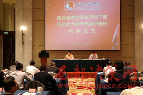 西部決策網(wǎng)訊11月14日至18日,陜西省質(zhì)監(jiān)系統(tǒng)領(lǐng)導(dǎo)干部綜合能力提升高級研修班在中國浦東干部學(xué)院成功舉辦。共有來自陜西省質(zhì)監(jiān)局機關(guān)各處室、直屬各單位和各市級、府谷縣、神木縣局共40名領(lǐng)導(dǎo)干部參加了培訓(xùn)學(xué)習(xí)。此次為期5天的研修班,著眼于提升陜西省質(zhì)監(jiān)系統(tǒng)干部的綜合素質(zhì)和領(lǐng)導(dǎo)能力,為實現(xiàn)質(zhì)監(jiān)部門服務(wù)大局能力水平的新提升和服務(wù)發(fā)展效果的新提升提供更加堅強的思想政治和組織保證。陜西省質(zhì)監(jiān)局黨組書記、局長喬軍出席結(jié)業(yè)儀式并發(fā)表重要講話。省局黨組成員、副局長李晉利出席開班儀式作動員講話,并全程參加培訓(xùn)學(xué)習(xí)。