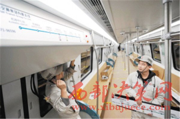技術(shù)人員正在安裝地鐵6號線車廂設(shè)備。