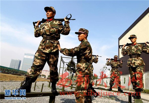 12月5日,艾麥爾·吾斯曼(左一)進(jìn)行突擊訓(xùn)練。武警上??傟?duì)四支隊(duì)新兵連維吾爾族戰(zhàn)士艾麥爾·吾斯曼來自新疆維吾爾自治區(qū),今年從江南大學(xué)應(yīng)征入伍。經(jīng)過嚴(yán)格的新兵訓(xùn)練,艾麥爾·吾斯曼快速完成由大學(xué)生向合格軍人的“漂亮轉(zhuǎn)身”。