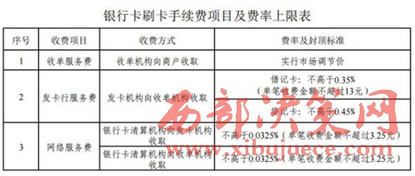 銀行卡刷卡手續(xù)費項目及費率上限表。來自發(fā)改委網(wǎng)站。