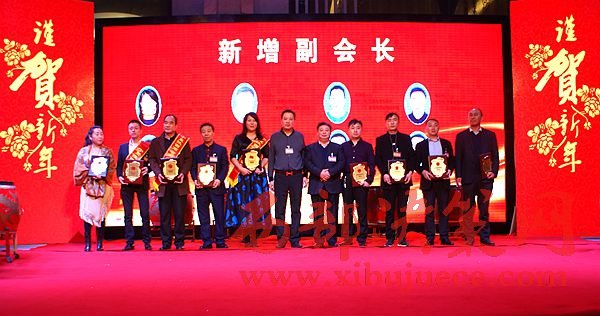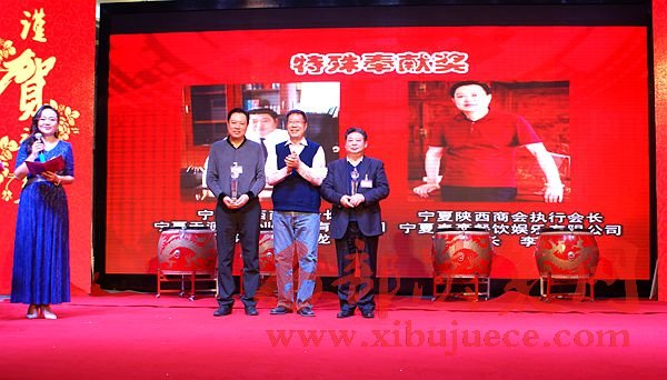 年會上,張海龍會長、李明義執(zhí)行會長一起向2016年新增常務(wù)副會長、副會長、理事授牌;商會黨支部書記、秘書長王惠選宣讀了寧夏陜西商會關(guān)于表彰獎勵2016年度特殊奉獻(xiàn)獎、誠信企業(yè)獎、創(chuàng)新企業(yè)獎、愛會敬業(yè)獎企業(yè)單位的決定。自治區(qū)人民檢察院原檢察長師夢雄向榮獲商會特別奉獻(xiàn)獎的張海龍會長、李明義執(zhí)行會長頒獎;張海龍會長、李明義執(zhí)行會長、黨支部書記、秘書長王惠選分別向11個榮獲誠信企業(yè)、11個榮獲創(chuàng)新企業(yè)、11個榮獲愛會敬業(yè)企業(yè)單位頒獎。