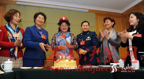 這是一次為6位女委員慶祝節(jié)日的聚會(huì),更是一次民族團(tuán)結(jié)的聯(lián)誼。6位女委員分別來自漢族、維吾爾族、錫伯族、烏孜別克族、柯爾克孜族,姐妹們?cè)谝黄饏⒓尤珖鴥蓵?huì)已有5年,雖然并不在同一個(gè)界別,但大家互幫互學(xué)互助,早已結(jié)下了深厚的友誼。每年“三八”婦女節(jié)都恰逢全國兩會(huì),姐妹們相聚在一起,同慶節(jié)日,親如一家。