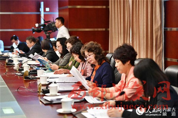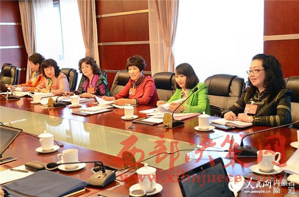 內(nèi)蒙古代表團的女代表們參加分組審議