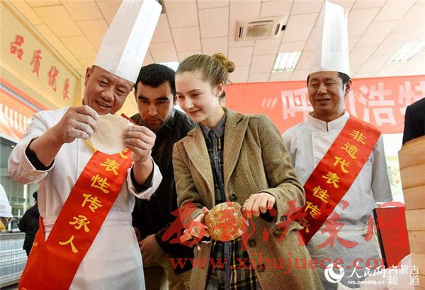 非遺傳承人教外國留學(xué)生搓莜面