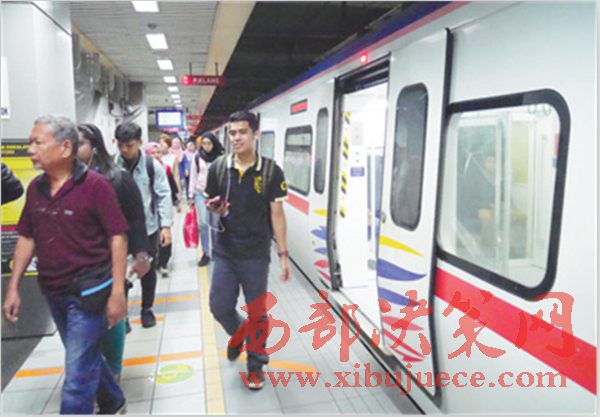 馬來西亞首都吉隆坡中央車站內(nèi),旅客從“安邦線”輕軌列車中走出。該列車由中國中車旗下中車株洲電力機車有限公司生產(chǎn),部分列車在馬來西亞中車軌道交通裝備有限公司組裝調(diào)試。