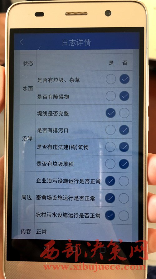 “最初,‘河長’巡河時,還要隨身帶上一只油性筆、一本登記簿等,將巡查時發(fā)現(xiàn)的問題作好記錄,再向上級部門匯報,如今,只需要帶上一部智能手機就行了。”李劍勇笑著晃了晃手機。