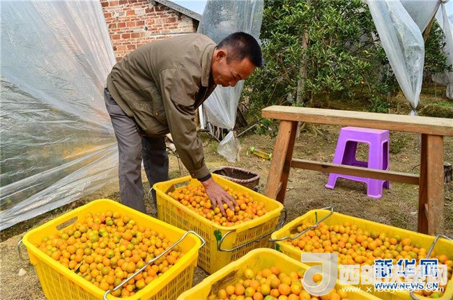 近年來(lái),廣西融安縣因地制宜,把金桔列為扶貧增收的重要產(chǎn)業(yè),通過農(nóng)業(yè)獎(jiǎng)補(bǔ)政策、專業(yè)種植技術(shù)培訓(xùn)等鼓勵(lì)貧困戶種植金桔,助力脫貧。融安縣大將鎮(zhèn)雅仕村的貧困戶漆昭賢,曾常年在外地打工,生活條件艱苦。2014年在縣里政策引導(dǎo)下,他返鄉(xiāng)種植金桔,并獲得專項(xiàng)補(bǔ)貼和無(wú)息貸款,連續(xù)三年參加縣農(nóng)業(yè)局等單位舉辦的種植技術(shù)培訓(xùn)班。如今,漆昭賢不僅在自己的地里種金桔,還承包了周圍農(nóng)戶的土地,種植面積十余畝,今年預(yù)計(jì)產(chǎn)量可達(dá)16000斤,純收入有望達(dá)到4萬(wàn)元。記者李絢麗攝