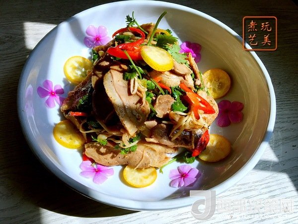 金桔與鴨脯及辛香配料經(jīng)抓拌后,互相大融和,各自奉獻(xiàn)精華,滋潤(rùn)的金桔,有份鴨油香,鴨脯肉里充滿桔香,吃過(guò)的都夸我好吃。