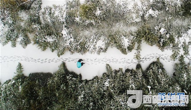 1月4日,合肥市翡翠湖公園內(nèi),兩名游客行走在雪中。當日,安徽省合肥市迎來2018年首場降雪。(記者 郭晨 攝)
