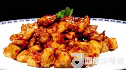 2、炒鍋放油,油熱放入胡蘿卜丁炒至變色。再倒入腌好的雞丁滑散,熟透撈出。