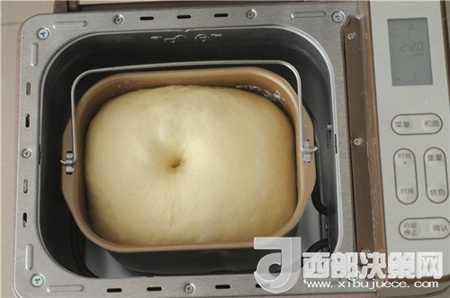 4.程序結(jié)束,面團(tuán)發(fā)酵好了,用手在中間撮個洞,不回縮不塌陷,剛剛好
