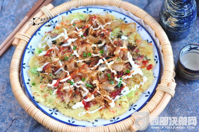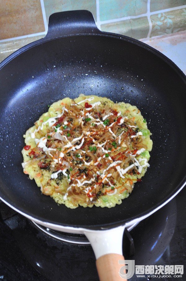 “大阪燒是一種日式蔬菜煎餅,有些地區(qū)根據(jù)日文漢字的寫法,也叫做“御好燒”,為日本關西的一種民間美食,也是大阪飲食文化的代表。由于外觀的關系,也有人稱大阪燒為“日本式比薩餅”,可以說放上去的食材,并沒有特殊規(guī)定,一般是自己想吃什么就放什么。吃膩了中式的雞蛋薄餅,換個口味也別俱一格。做這個頂重要的是,一定要用不粘鍋,不然想翻面的時候,底部巴鍋底不動,而且還容易上面的沒熟,下面的已經(jīng)糊了。”