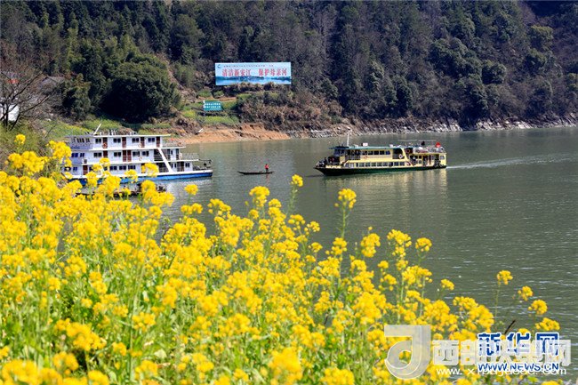 當(dāng)日,陽光燦爛,氣溫回升,安徽省黃山市歙縣境內(nèi)的石潭村、山水畫廓新安江、大洲源等地種植的油菜花陸續(xù)盛開,吸引著全國各地的游客到此觀光旅游。新華網(wǎng)發(fā)(潘成 攝)