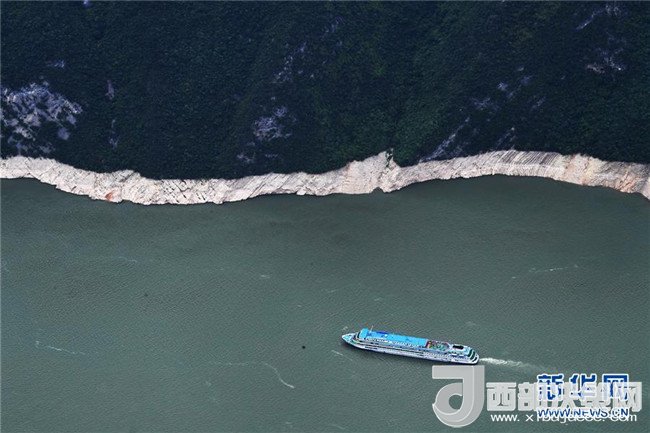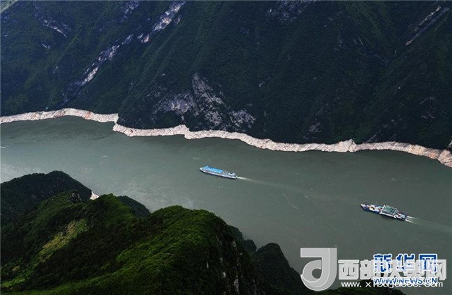 5月23日,船只穿梭在瞿塘峽(無(wú)人機(jī)拍攝)。 新華社記者 王全超攝