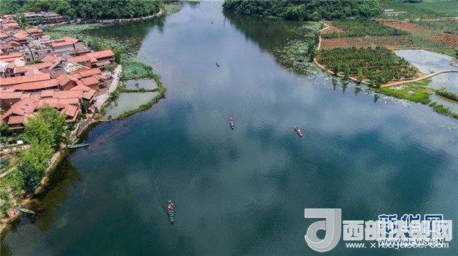 游人在普者黑國(guó)家濕地公園蕩舟休閑(5月26日攝)。