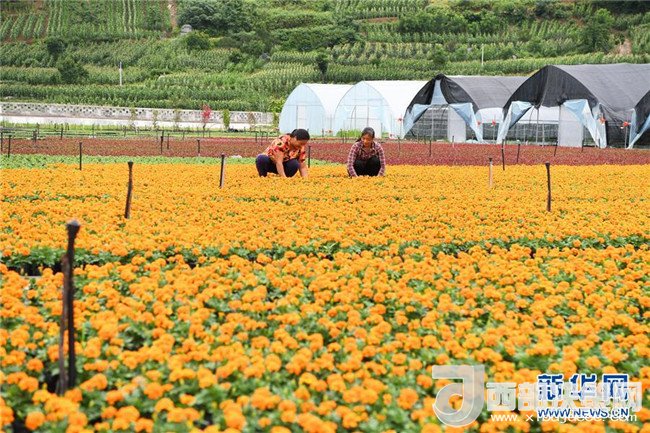 6月12日,艷山紅村村民在村里的花卉基地勞作。近年來,重慶市武隆區(qū)羊角鎮(zhèn)艷山紅村探索“公司+村集體+農(nóng)戶+基地”的經(jīng)營(yíng)模式,發(fā)展花卉種植等產(chǎn)業(yè),實(shí)現(xiàn)了“農(nóng)村資源變資產(chǎn)、資金變股金、農(nóng)民變股東”,幫助當(dāng)?shù)剞r(nóng)民通過保底分紅、效益分紅、務(wù)工收益等方式脫貧增收。新華社記者王全超攝