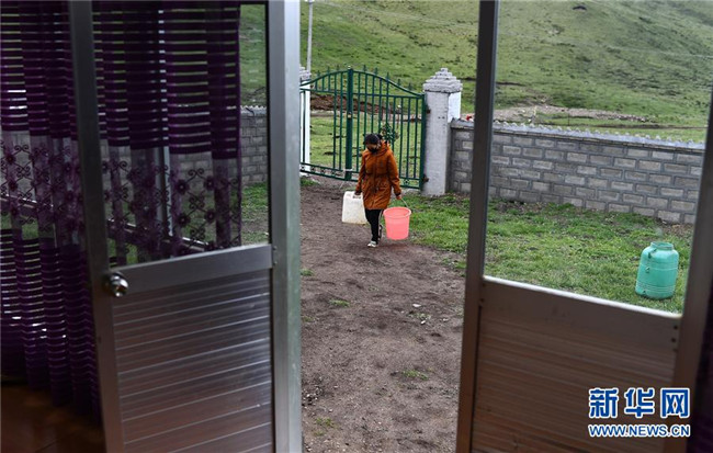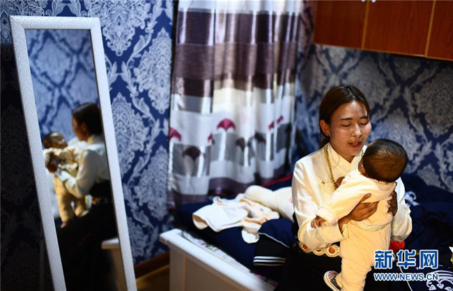 6月13日,在河南蒙古族自治縣易地扶貧搬遷安置小區(qū)幸福家園,2018年初搬進新家的關卻措在照看自己的外甥才華南杰。新華社記者 張宏祥 攝