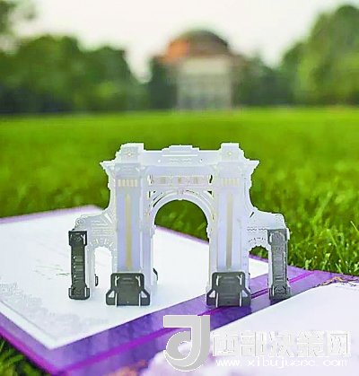 他輕輕打開印有清華大學?;盏淖仙鈿ぃ蛔毦咴O計感的清華地標微型二校門躍然紙上。