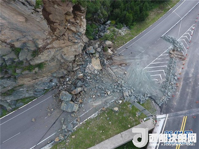 這是五臺(tái)山景區(qū)梵仙山路段的山體崩塌現(xiàn)場(chǎng)(7月21日攝)。受降雨影響,山西五臺(tái)山景區(qū)于7月19日和20日發(fā)生兩起山體崩塌地質(zhì)災(zāi)害,沒有造成人員傷亡和車輛損失。新華社發(fā)(楊晨光攝)