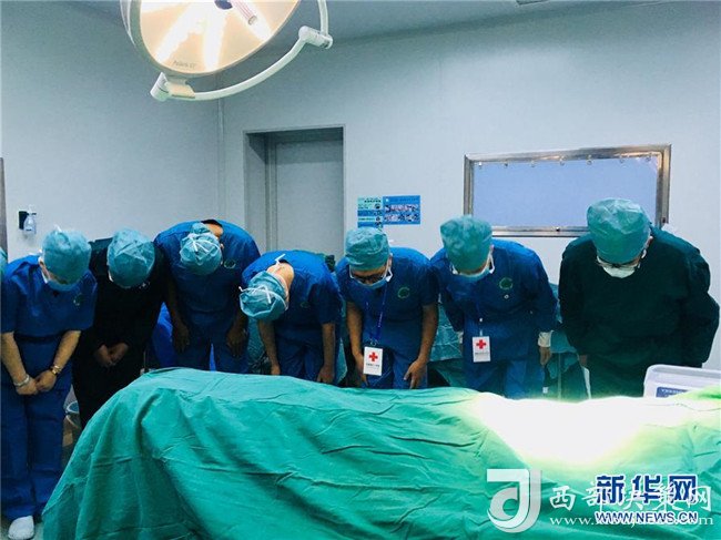 8月22日,在器官捐獻獲取手術前,醫(yī)護人員向捐獻者鞠躬。