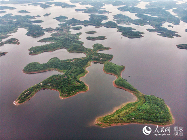 俯瞰長(zhǎng)壽湖,十幾個(gè)首尾相接的島嶼呈現(xiàn)出繁寫(xiě)的魏碑體“壽”字狀。羅嘉 航拍俯瞰長(zhǎng)壽湖,十幾個(gè)首尾相接的島嶼呈現(xiàn)出繁寫(xiě)的魏碑體“壽”字狀。羅嘉 航拍