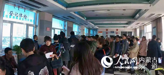錫林郭勒盟中心血站內(nèi)排滿了前來(lái)獻(xiàn)血的市民。