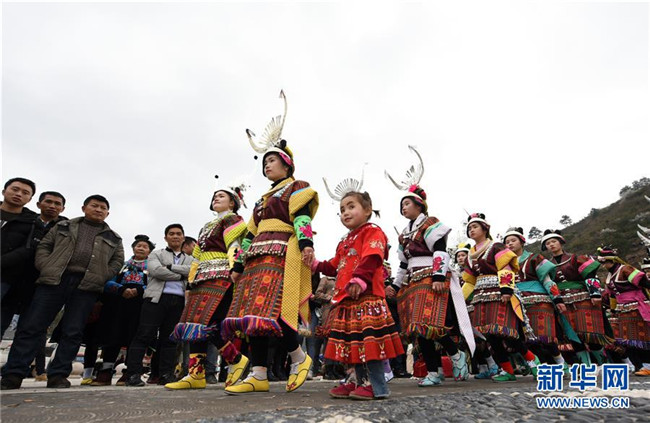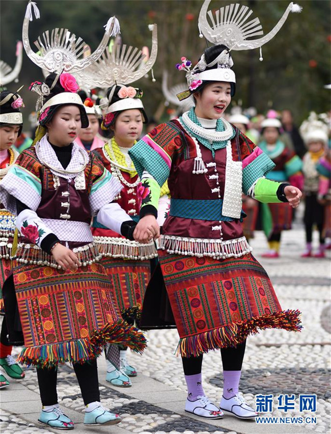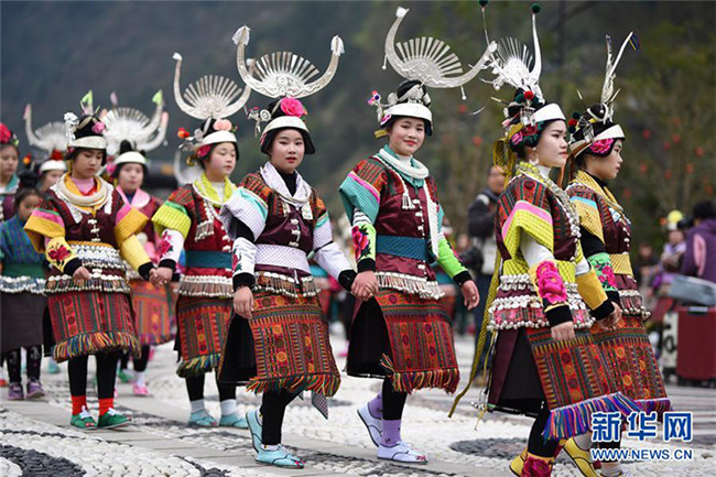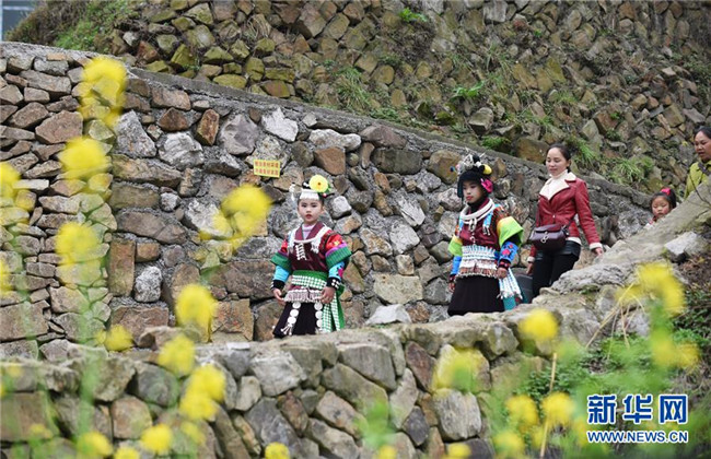 3月16日,在丹寨縣南皋鄉(xiāng)清江村,苗族姑娘在前往參加翻鼓節(jié)活動(dòng)途中。 當(dāng)日,貴州省黔東南苗族侗族自治州丹寨縣南皋鄉(xiāng)清江村清江村舉行翻鼓節(jié)。翻鼓節(jié)是當(dāng)?shù)孛缱宕迕裼哟焊絹?lái)的民俗節(jié)日,至今已有近600年歷史,每年農(nóng)歷二月舉行。 新華社記者 楊文斌 攝