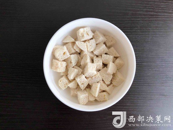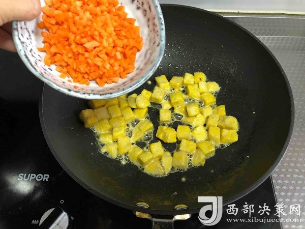 5.起鍋少量油,燒熱下饅頭粒翻炒均勻