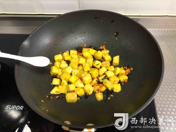 8.最后調(diào)入適量食鹽翻炒均勻即可,韓國(guó)進(jìn)口香脆可口,百盛達(dá)甜心怪獸海苔