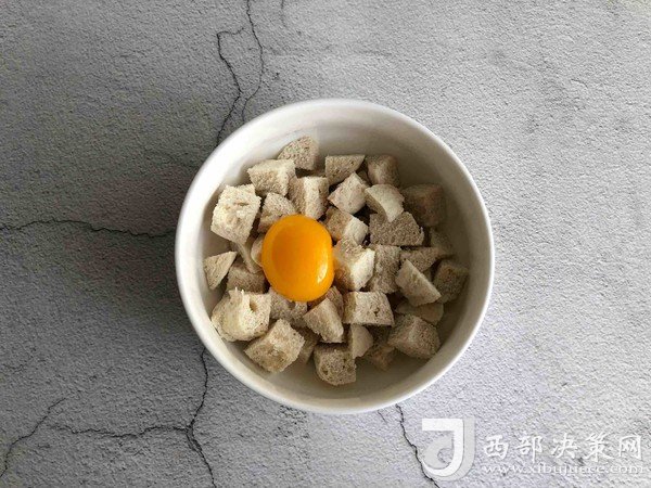 4.雞蛋黃打入饅頭粒中攪拌均勻,蛋清不要