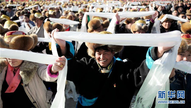 3月28日,慶祝西藏民主改革60周年大會(huì)在拉薩布達(dá)拉宮廣場(chǎng)舉行。新華社記者 晉美多吉 攝
