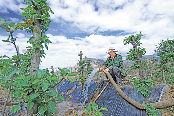 圖為苗木基地工作人員在為苗圃澆水。通訊員 洛桑克珠 記者 唐斌 攝