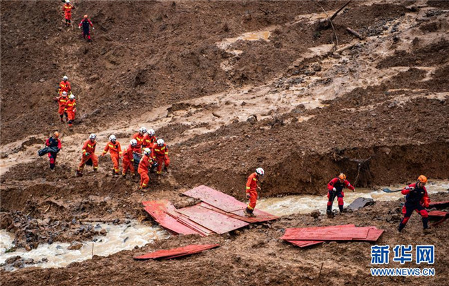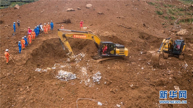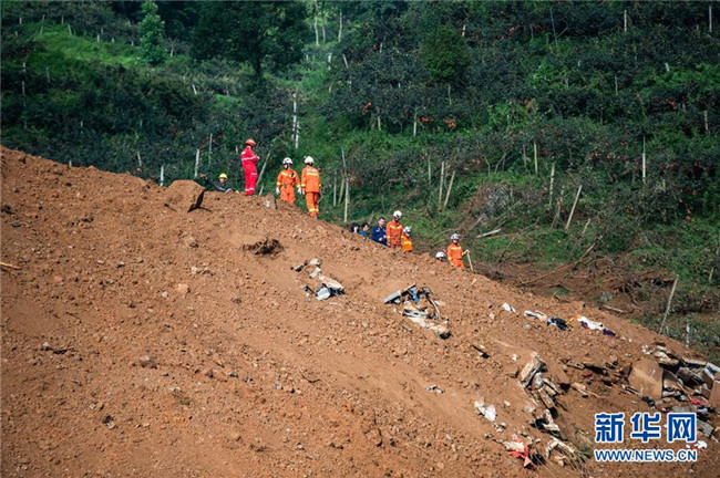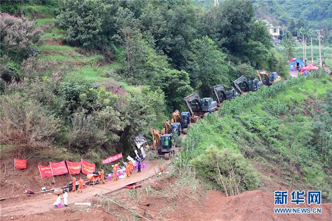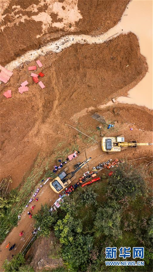 7月24日,救援人員在山體滑坡現(xiàn)場開展救援。  新華社記者 陶亮 攝