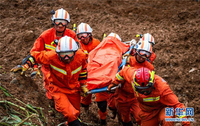7月24日,救援人員從山體滑坡現(xiàn)場運出遇難者遺體。  新華社記者 陶亮 攝