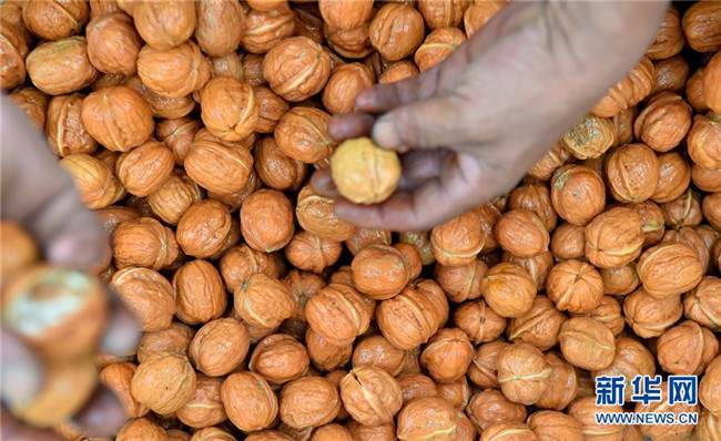 近年來,河北省石家莊市贊皇縣依托山地生態(tài)優(yōu)勢,因地制宜,引導(dǎo)農(nóng)戶種植核桃等經(jīng)濟作物,發(fā)展特色農(nóng)業(yè),助力農(nóng)民脫貧增收。據(jù)了解,目前贊皇縣核桃種植面積已達40余萬畝,遍及全縣11個鄉(xiāng)鎮(zhèn)150多個村。 新華社記者 駱學(xué)峰 攝