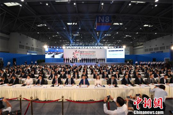 圖為2019中國(guó)國(guó)際智能產(chǎn)業(yè)博覽會(huì)開幕式現(xiàn)場(chǎng)。陳超攝