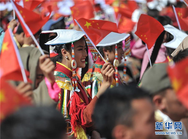 9月29日,觀眾身著民族特色服裝參加聯(lián)歡活動(dòng)。新華社記者晉美多吉攝