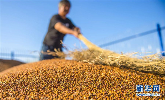 10月7日,在棗強縣肖張鎮(zhèn)西趙莊村,村民在清除高粱中的雜質(zhì)。 新華社記者 李曉果 攝