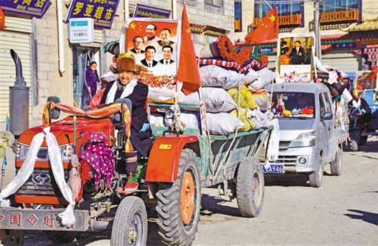 圖為打隆鎮(zhèn)邊境小康村群眾駕駛農用車駛向幸福新家。記者 劉楓 攝