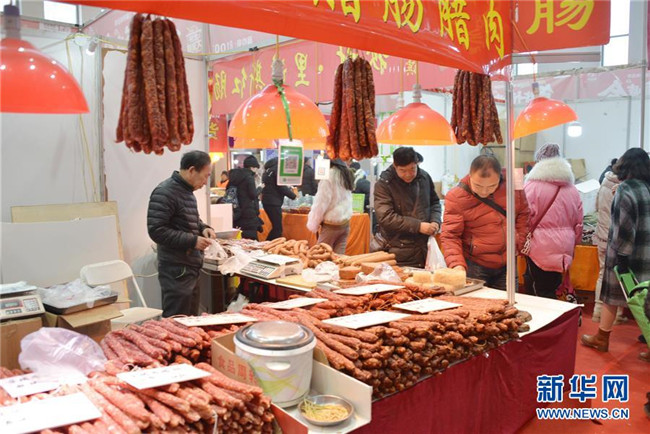 1月8日,消費者在內(nèi)蒙古國際會展中心挑選香腸等年貨。新華社記者 王靖 攝