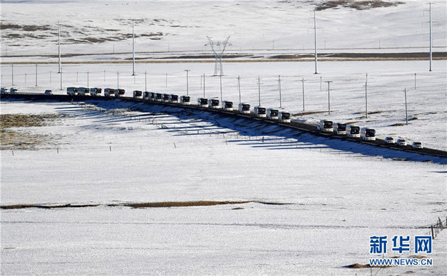 西藏那曲市雙湖縣牧民乘坐大巴在易地搬遷途中(2019年12月23日攝)。新華社記者 覺果 攝